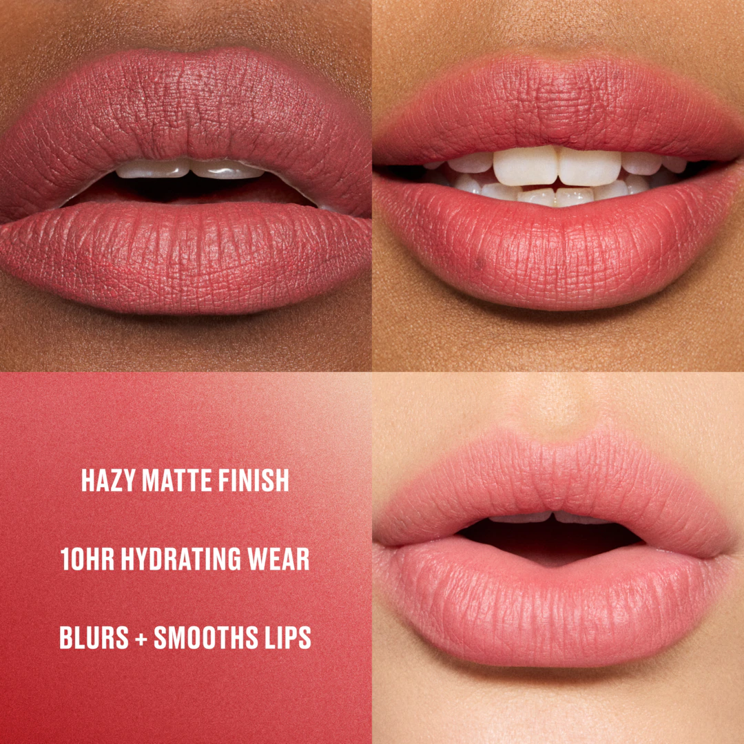 A hazy matte lipstick for soft-focus, blurred colour and 10-hour weightless longwear that hydrates lips instantly, all day and overtime.